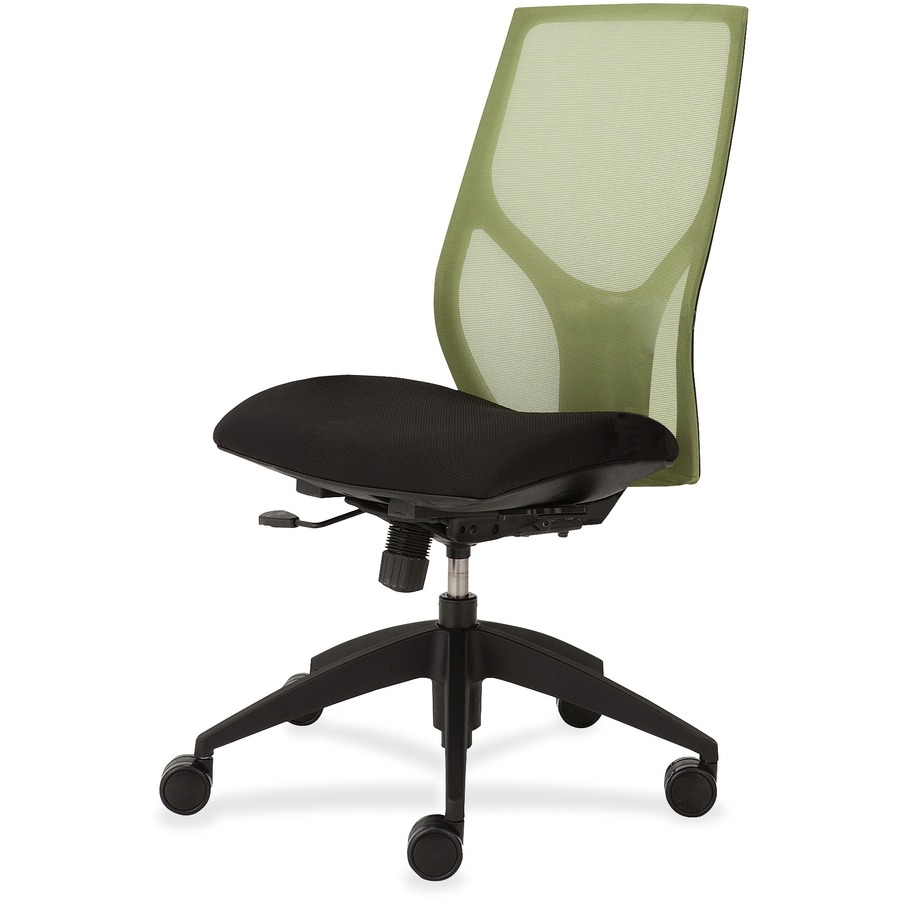 Marketing InformationVault Task Chair with no arms goes beyond the expected with features that let you personalize your comfort. Uncommon for a mesh back design, ratchet back-height adjustment lets you raise or lower the backrest from 23" to 25-1/2" for the greatest comfort. High-quality, woven tension mesh in green conforms to your back, following every move with support, including the lumbar region. Seat slider adjusts the seat depth from 16" to 18-1/2" so you are just where you need to be. Other functions include upright tilt lock, 3:1 back-to-seat tilt ratio, center knob tension adjustment, pneumatic seat-height adjustment from 17-1/2" to 22-1/2" and 360-degree swivel. High-resilient, molded foam seat features a waterfall seat front to promote circulation and good health. 20" wide seat is upholstered in Onyx fabric. Durable, black nylon base with five casters offers long, trouble-free service. Weight capacity is 300 lb.