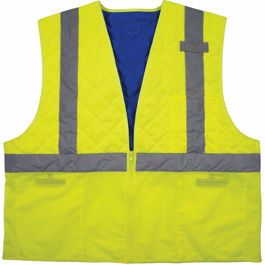 Large – Heat Protection – Zipper Closure – 2 Pocket(s) – Polyester, Nylon – Lime – High Visibility, Lightweight, Breathable, Interior Pocket, Pen Slot, Reflective Strap, Water Repellent, Exterior Pocket – 1 Each