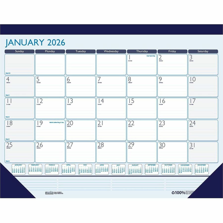 Large – Professional – Julian Dates – Monthly – 12 Month – January 2025 to December 2025 – 1 Month Single Page Layout – Desk Pad – Teal, Blue – Leatherette – 17″ Height x 22″ Width – Reference Calendar, Ruled Daily Block, Reference Calendar, Notes Area, Perforated Sheet – 1 Each