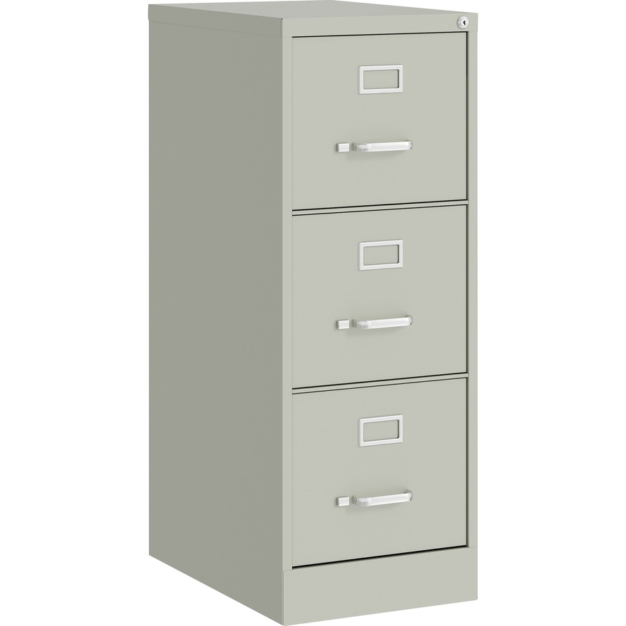 15″ Width x 22″ Depth x 40.2″ Height – 3 x Drawer(s) for File – Letter – Vertical – Ball-bearing Suspension, Removable Lock, Pull Handle, Wire Management – Light Gray – Steel – Recycled