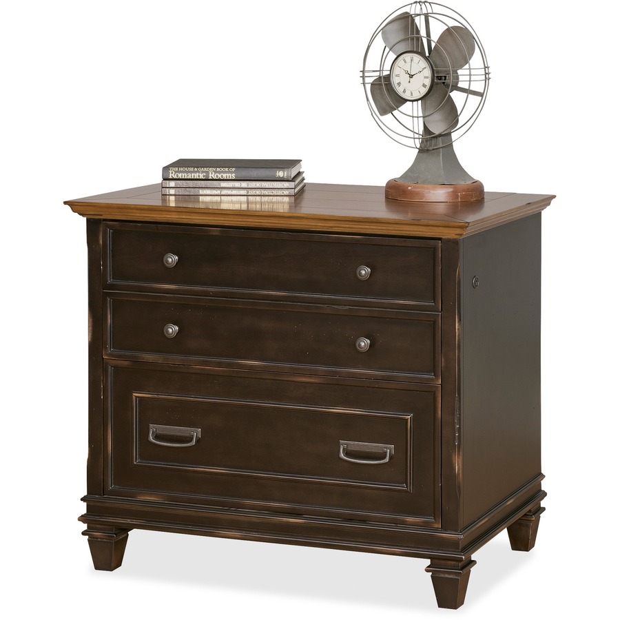 2 x File Drawer(s) – Material: Wood Veneer – Finish: Vintage Black – Lockable Drawer, Ball Bearing Glide – For File, Home Office, Living Area