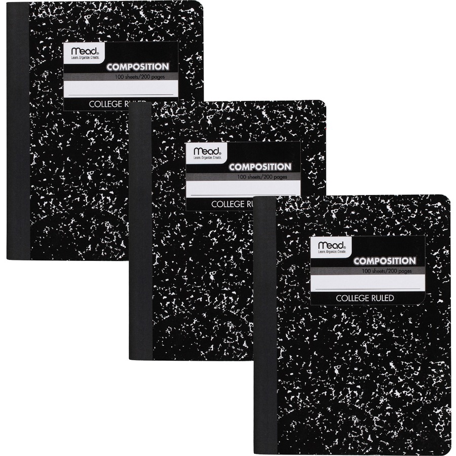100 Sheets – Sewn – 9 3/4″ x 7 1/2″ Sheet Size – 9″ Height x 7″ Width x 0.5″ Length – White Paper – Black Marble Cover – Multiplication Table, Conversion Table, Sturdy Cover, Class Schedule – 3 / Pack