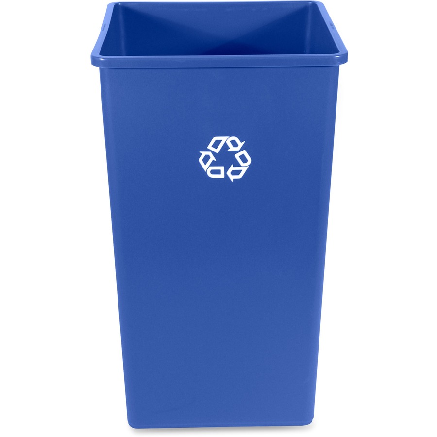 50 gal Capacity – Square – Weather Resistant, Easy to Clean, Compact – 34.3″ Height x 19.5″ Width x 19.5″ Depth – Resin – Blue – 4 / Carton