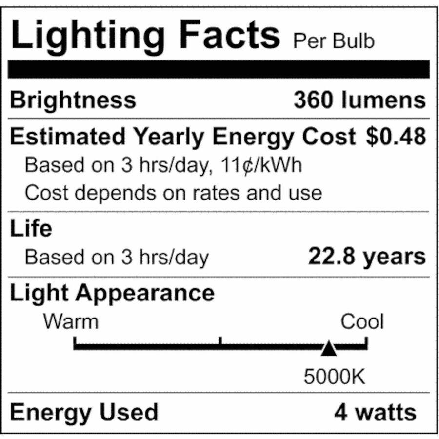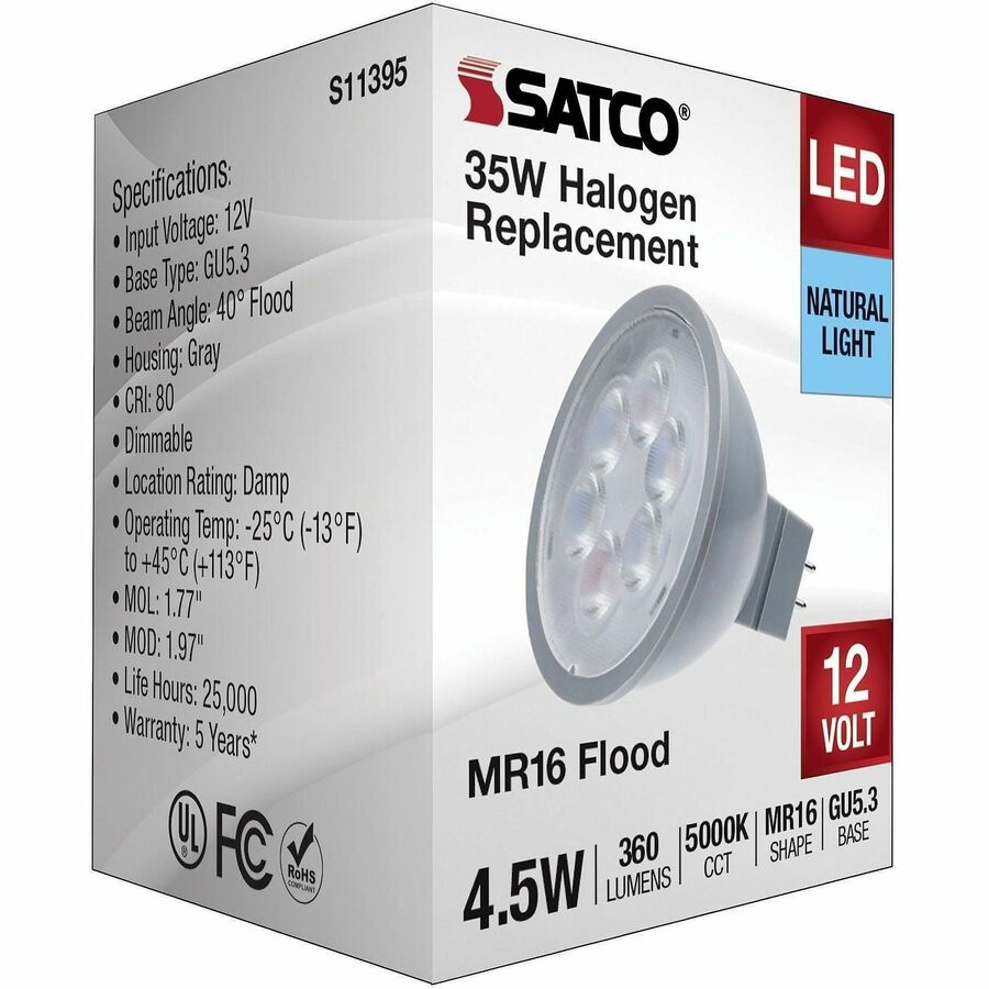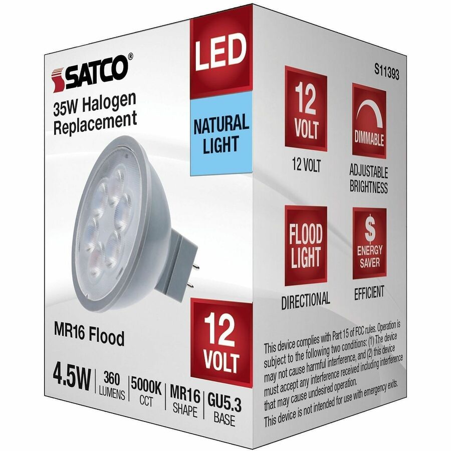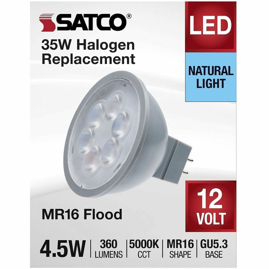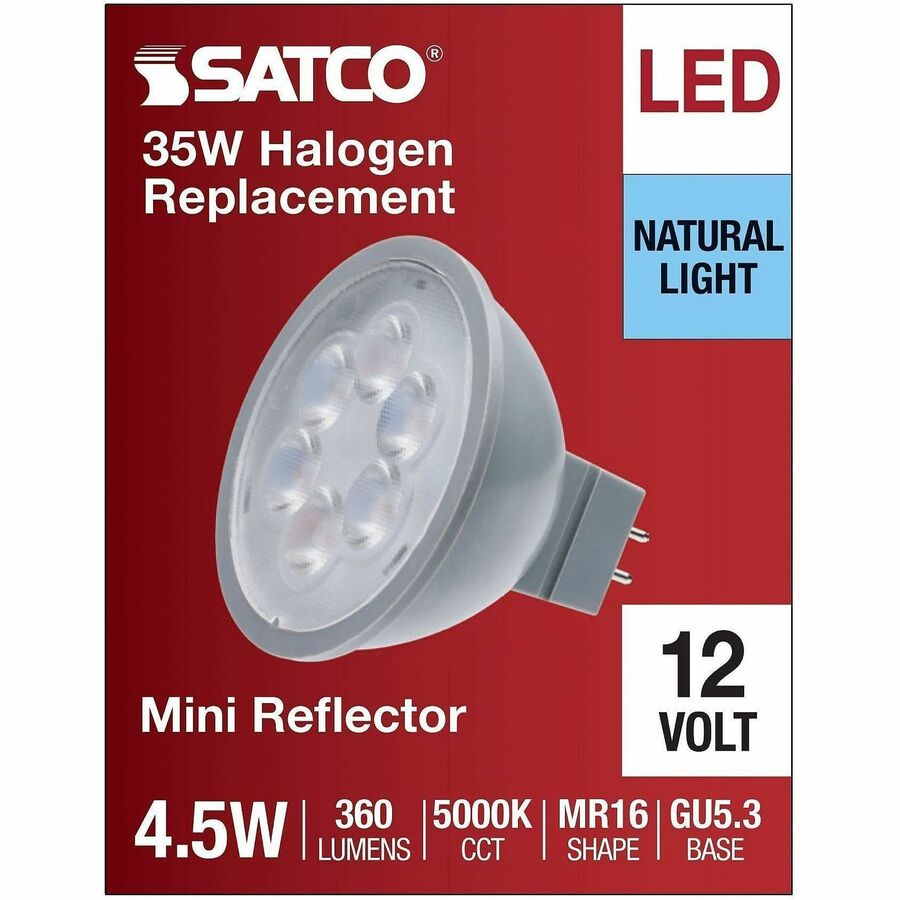 4.50 W – 35 W Incandescent Equivalent Wattage – 12 V – 360 lm – MR16 Size – Silver – White Light Color – GU5.3 Base – 25000 Hour – 5000°K Color Temperature – 80 CRI – 40° Beam Angle – Dimmable – Adjustable Brightness – 1 Each