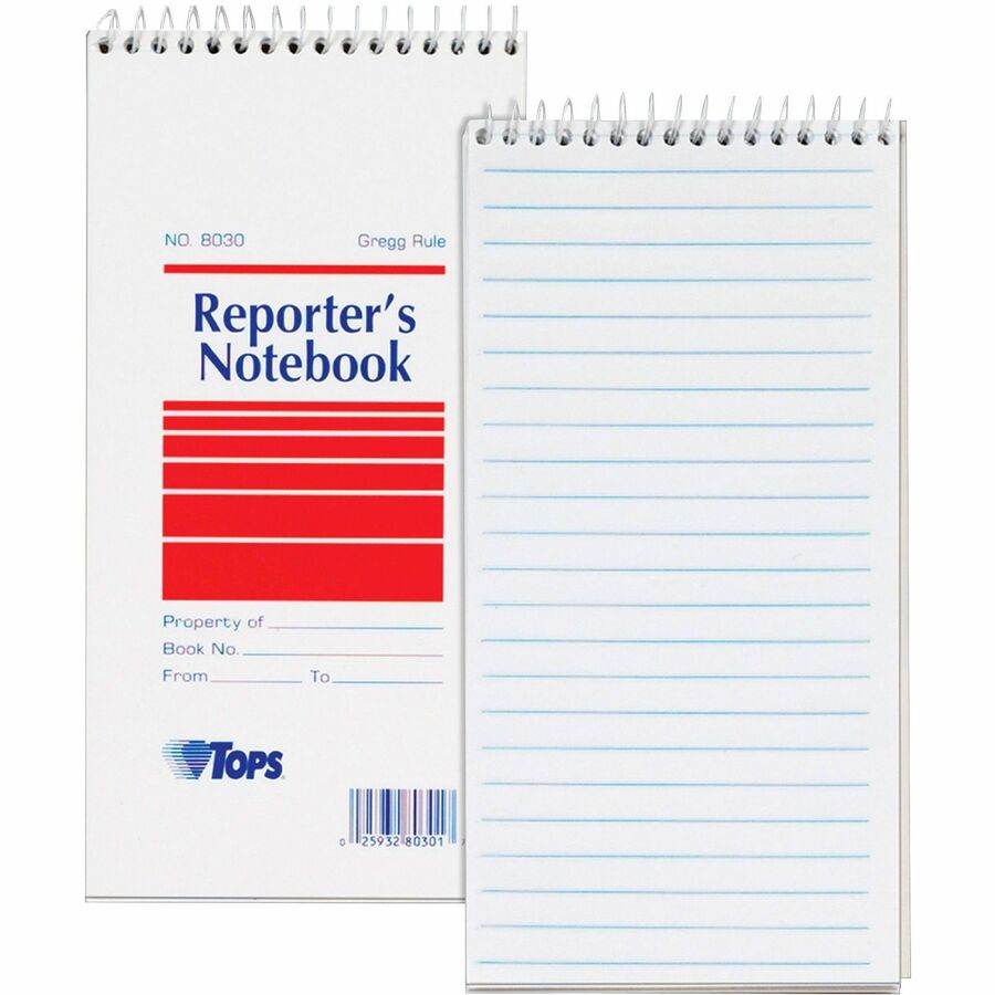 | Marketing Information | Reporter's Notebook is a handy size that fits into a vest pocket or purse. Gregg rulings are precisely printed. Coil-lock wire binding prevents scratched desktops or snagged clothing. Top wire binding is ideal for both right-handed and left-handed writers. Notebook contains 70 sheets of 15 lb. of white paper and has a 24 point chipboard backer for writing support. |