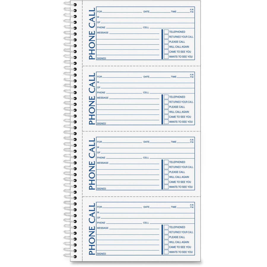 Spiral Bound – 2 Part – Carbonless Copy – 2.75″ x 5″ Form Size – 11″ x 5.50″ Sheet Size – White – 1 Each