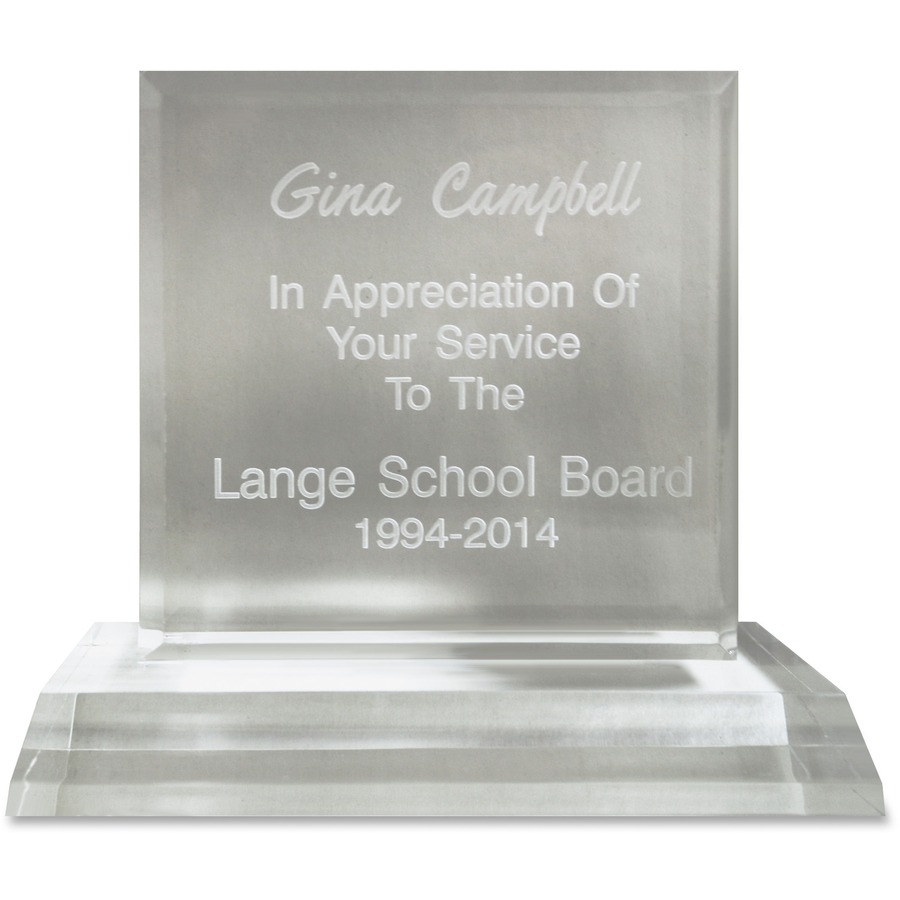 | Marketing Information | Honor your recipient with a modern, stylish, laser-engraved acrylic award. It is manufactured from polished, hand-cut, high-quality acrylic. Impression size is 5" x 4-3/4" so you have plenty of room for your logo and message. |